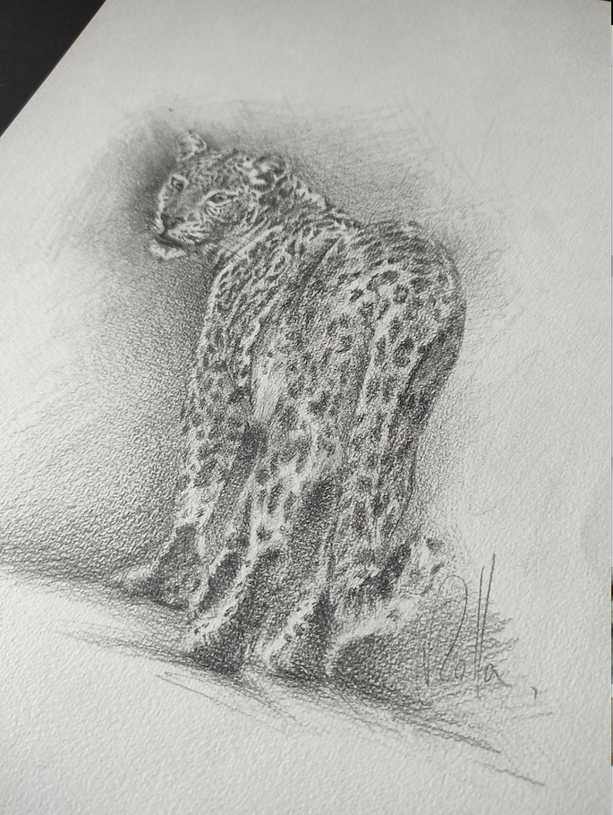 Dessin de recherche original et unique (1 unique exemplaire), fait à la main par l’artiste représentant un léopard